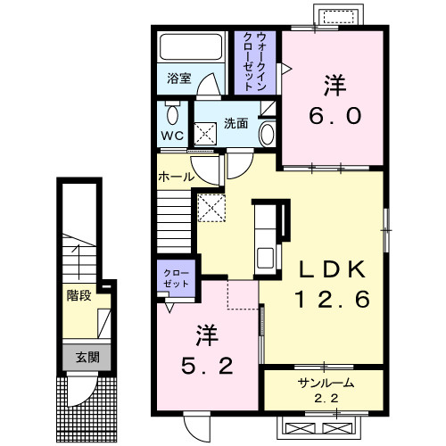 洋室 6.0帖/洋室 5.2帖/LDK 12.6帖 - 向き